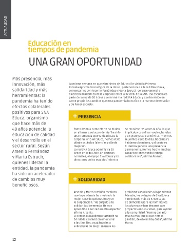que la pandemia ha mostrado la Además, los colegios de SNA Educa