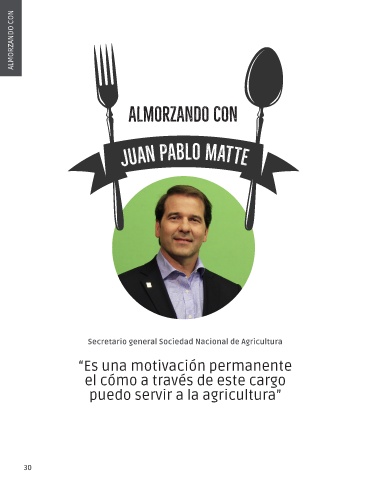 ALMORZANDO CON ALMORZANDO CON Juan Pablo Matte Secretario general Sociedad Nacional de Agricultura “Es una motivación permanente el cómo a través de este cargo puedo servir a la agricultura” 30