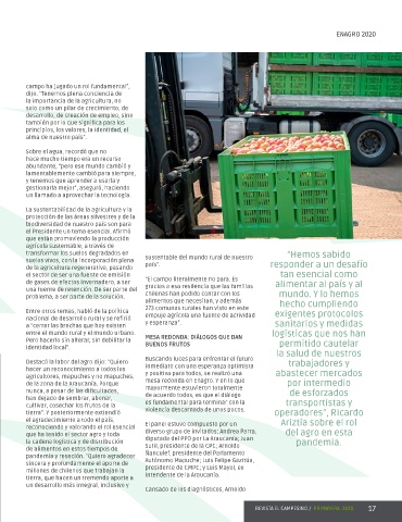de parar a los Destacó el desempeño del agro en este AGRADECE AL AGRO: “LA AGRICULTURA NO suelos vivos, con la incorporación plena país”. responder a un desafío