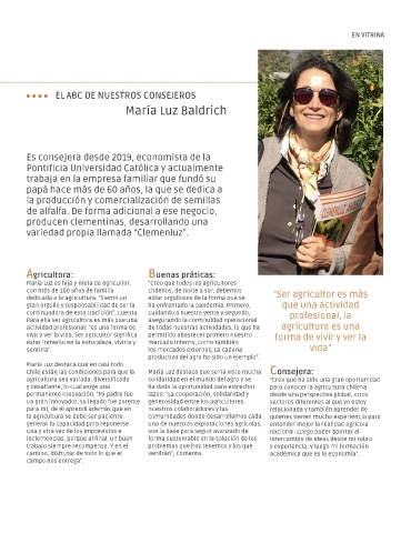 actividades durante el año agrícola 2020–2021 para dar mayor tranquilidad a quienes van a María Luz es hija y nieta de agricultor, “Creo que todos los agricultores