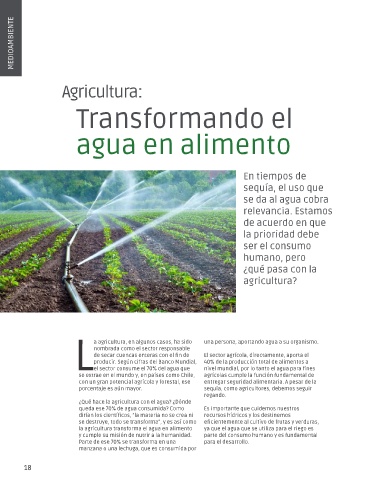 la agricultura transforma el agua en alimento ya que el agua que se utiliza para el riego es
